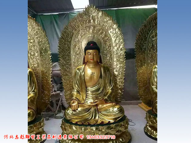 貼金佛像是鑄銅雕塑常見的一類,鑄銅雕塑佛像經過貼金處理后稱之為貼金佛像。
