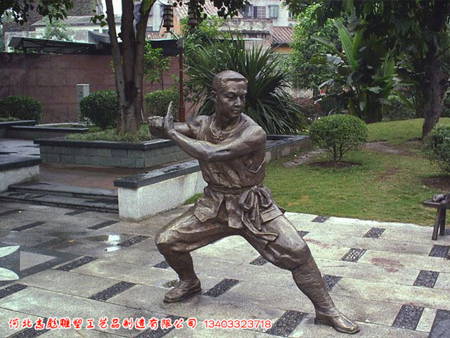 雕塑的主題往往取決于所要安裝雕塑的環(huán)境,這是一件用于街頭公園的銅雕作品,它以武術(shù)為題,帶動(dòng)全面健身,積極向上,引導(dǎo)力強(qiáng)。