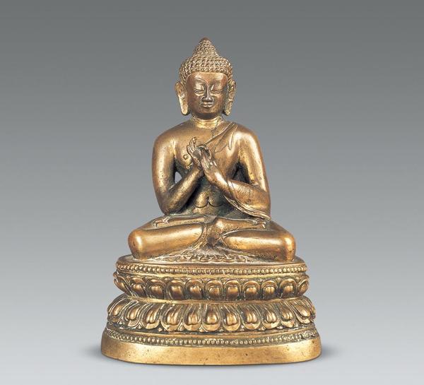 唐代銅佛像幾大特點。手佛像藝術發(fā)展達到了一定高度。造像手法日趨細膩,技巧越發(fā)成熟,反映了唐代人的審美心態(tài)和藝術情操。唐代的金銅佛像特征;佛像以豐腴為美,面龐圓潤,像身渾厚,頭飾螺發(fā),衣紋線條自然,繁而不亂;菩薩像體態(tài)豐盈,多束高髻,上軀袒露,下著羊腸大裙。唐代菩薩像最流行的樣式為“三段屈曲式”,從胸部至腰際形成突出的弧線,并配以像身的外輪廓和帔帛的曲線,也稱“三折技式”,即頭、腰、臀三部位猶如“一波三折”。