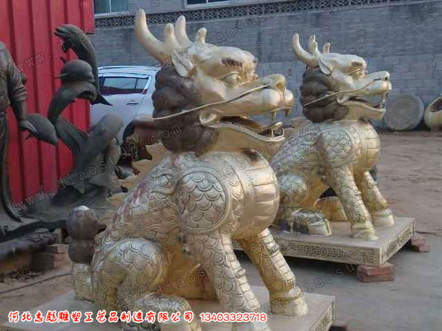 麒麟是動(dòng)物雕塑中的一種神獸,有很多人都喜歡鑄造銅麒麟放到商場(chǎng)、公司門(mén)前,志彪雕塑廠為廣大客戶(hù)提供銅麒麟定做,歡迎聯(lián)系。