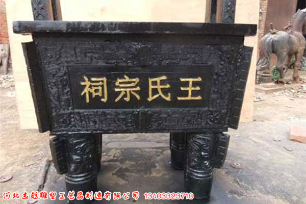 祠堂銅香爐顧名思義就是在祠堂中使用的銅香爐雕塑,在我們生活中有著非常廣泛的應用,大家都知道熏香我國有著非常悠久的歷史和文化,隨著時代的發(fā)展及銅雕技術的不斷進步,現(xiàn)代生活中常見的銅香爐種類多以仿古的居多,雖然材質相同,但是在造型和制作工藝上也是有著很大的差異的,我公司是專業(yè)的銅香爐生產(chǎn)廠家,精通于各種寺廟銅香爐,紫銅香爐和祠堂銅香爐的制作,在銅香爐制作方面廣受人們的好評,歡迎大家來電咨詢。