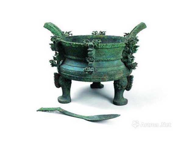 1978年,河南淅縣大旱,河床干枯,出現(xiàn)裂縫。一個放羊的孩子經(jīng)過干枯的河床,不小心被一個東西絆倒在地。起初他以為是木樁,細看才發(fā)現(xiàn)是個銅制的東西。淅縣文物局得到消息后,立即組織人員進行了保護挖掘。僅3天,發(fā)掘工作便全部結(jié)束,收獲驚人——從河床下面的楚國墓葬共出土56件青銅器,百分之八十都是國家一級保護文物。其中有7個造型與紋飾完全相同,由大到小依次排列的青銅鼎。國家博物館收藏的這只正是7件青銅鼎中最大的那個。