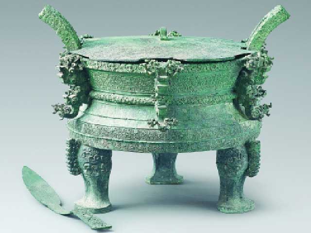 在傳統(tǒng)的形制中,有兩種鼎:一種是方鼎,為平底,如著名的司母戊大方鼎(后改名為“后母戊大方鼎”)、大禾方鼎、獸面乳釘紋銅方鼎等;另一種是圓鼎,一般采用與缶、罐、盂等器相類似的圓底,如大克鼎、大盂鼎、子龍鼎、毛公鼎等。